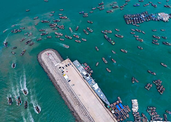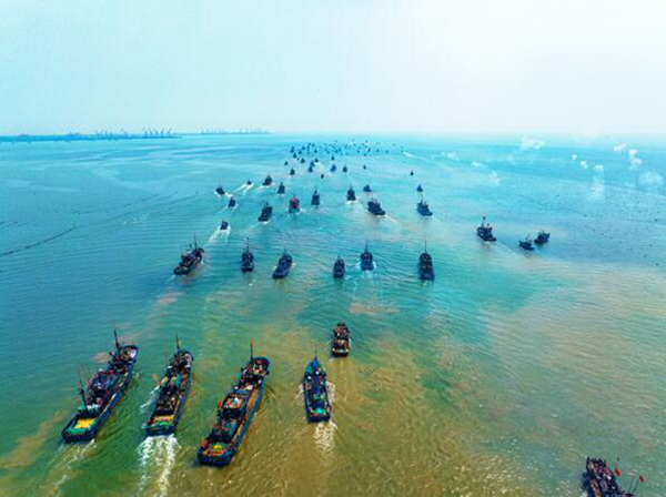 9月1日12时,为期四个月的黄渤海伏季休渔期结束,山东日照登记在案的2670艘渔船驶离渔港,扬帆出海作业。