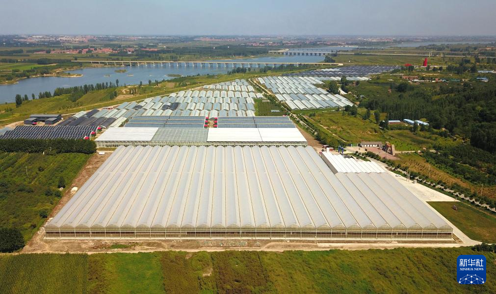 9月6日拍摄的位于山东省昌邑市饮马镇的高标准种植大棚(无人机照片)。新华社记者 徐速绘 摄