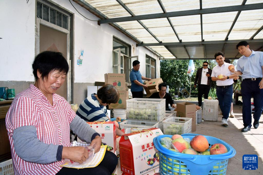 9月22日,在洋河镇曲家炉村一采摘园,果农在为游客分装采摘的苹果。新华社记者 李紫恒 摄