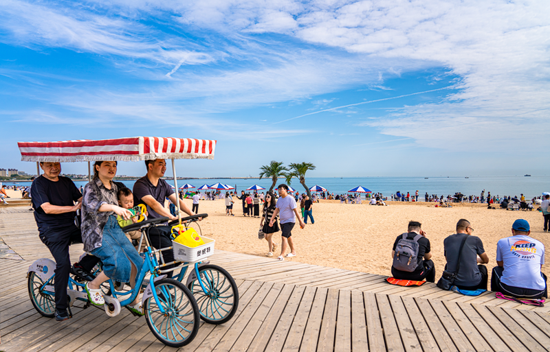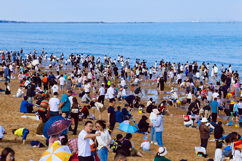 国庆假期,山东日照成为众多旅游出行者的首选。10月2日,日照海滨游人如织,来自四面八方的市民和游客在海边观海听涛、踏浪嬉水、赶海拾贝、绿道骑行……尽情享受着惬意的秋日滨海美景。(文/宋洪飞)