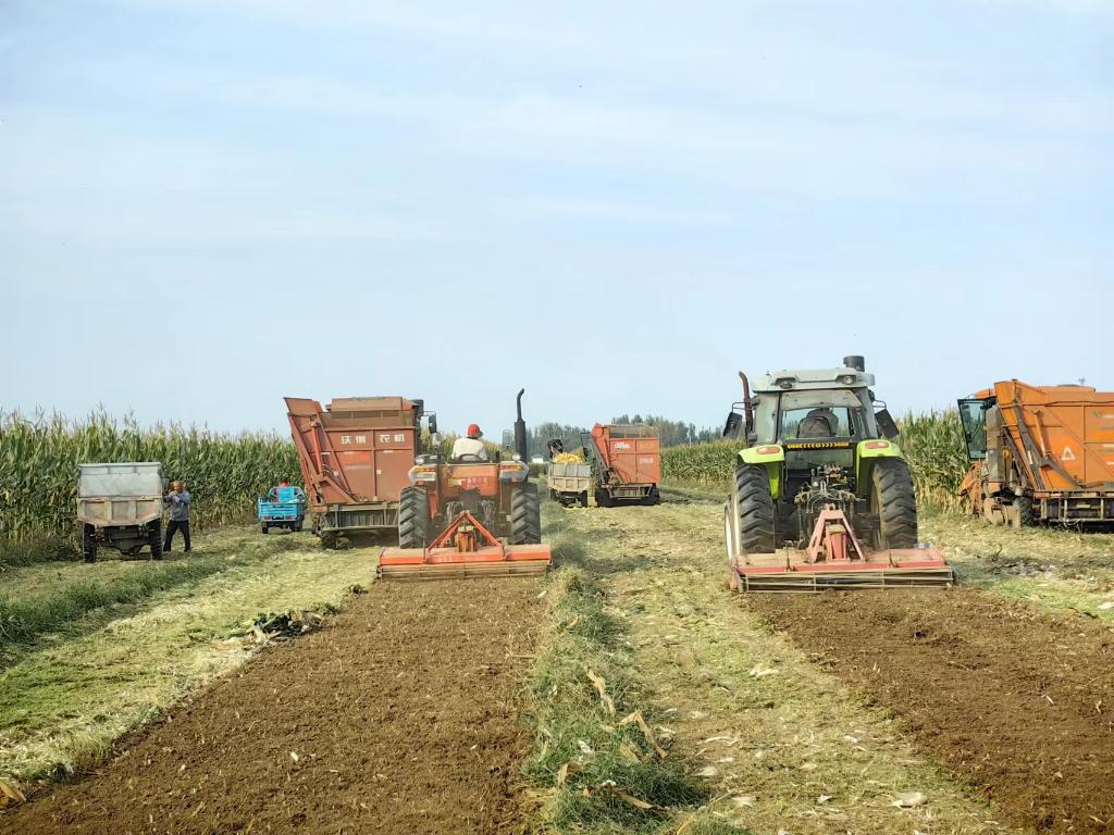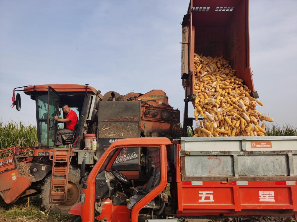 山东省乐陵市孔镇镇吕门楼村的一块玉米地里,随着收割机轰鸣前行,一个个金灿灿的玉米棒被收进车斗,一行行玉米秸秆被粉碎还田,几台旋耕机紧随其后作业。“今年玉米亩产量达1400斤,每亩地能比去年多收200斤。”吕门楼村党支部书记吕廷良兴奋地说。