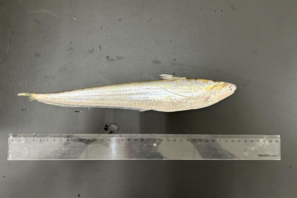 山东省济南生态环境监测中心调查队员采集到的一条野生黄河刀鱼。(受访者供图)