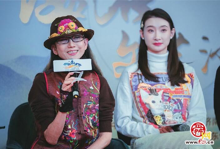 11月16日晚,杨丽萍(左)参加海右文艺沙龙,接受有关舞剧《孔雀》的采访。济南时报·新黄河客户端记者黄中明 摄