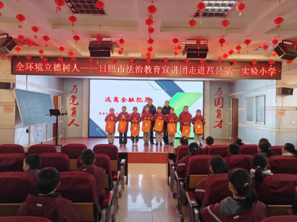 12月20日,为进一步提升广大师生的法制意识和自我保护能力,营造法制校园的良好环境,山东莒县公安局民警走进莒县第一实验小学,把安全防范知识送到师生身边。