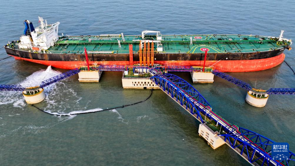 山东港口烟台港是我国码头、罐区、管道一体化运营港口,拥有2座30万吨级原油码头、1200公里长输管道,形成了铁路、公路、水路共同组成“卸、储、运”原油一体化储运体系。今年以来,烟台港原油吞吐量超4880万吨,同比增长16%。新华社记者 李安 摄