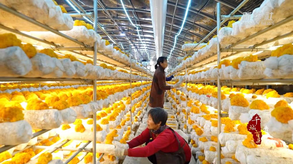 近日,走进山东省五莲县红泥崖智慧菌菇产业园大棚,金灿灿的“黄金花”在一排排菌棒上绽放,饱满鲜艳、煞是喜人,种植大棚俨然成了一间“黄金屋”。村民们正穿梭其间采收黄金耳,棚内一派繁忙的劳作景象。