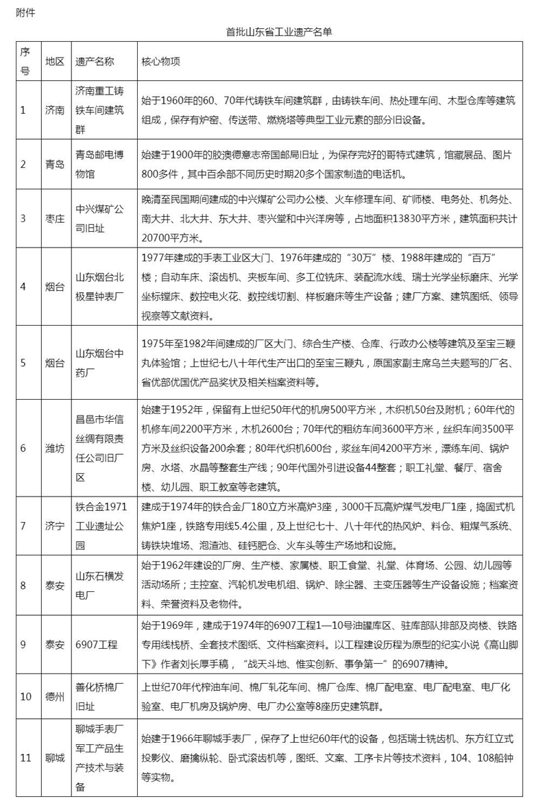 山东省工业和信息化厅网站日前公布首批山东省工业遗产名单。经所有权人自愿申请、当地政府同意、工业和信息化主管部门推荐、专家评审、现场核查和网上公示等程序,包括济南重工铸铁车间建筑群、青岛邮电博物馆在内的11处遗产获认定。