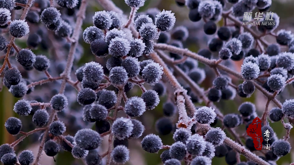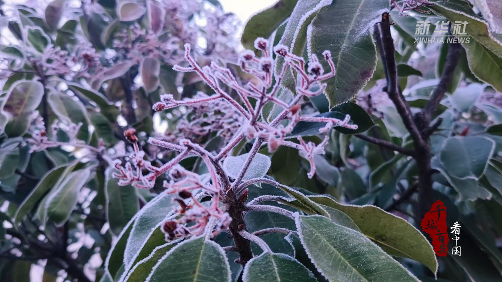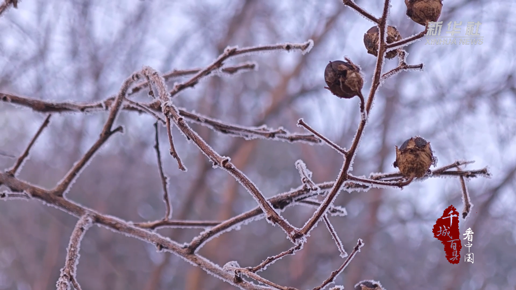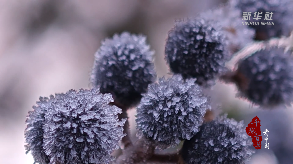 深冬时节,气温低寒,在山东省菏泽市巨野县洙水河湿地,红叶石楠、大叶女贞等植物枝头凝结出洁白的霜花,晶莹剔透,美不胜收。