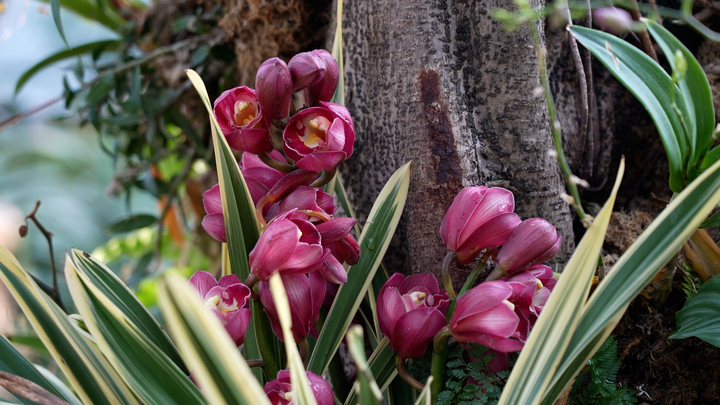 作为附生植物的蝴蝶兰、文心兰是园中花卉的主角,它们巧妙地生长在大树的枝干间,与树叶、蕨类植物构成了一个个美丽的植物小景。工作人员引入了近200种、3000余株,其形态各异、品种丰富,经过精心设计,或隐藏于树叶之间,或悬挂于巧妙构建的竹编框架之上,有的清丽淡雅,有的气宇轩昂,有的婀娜多姿……步入这一“兰花世界”,幽香阵阵,身心俱醉。