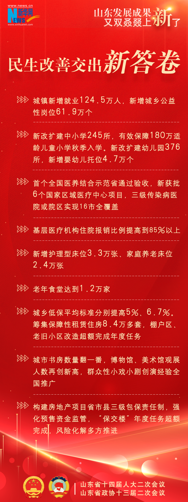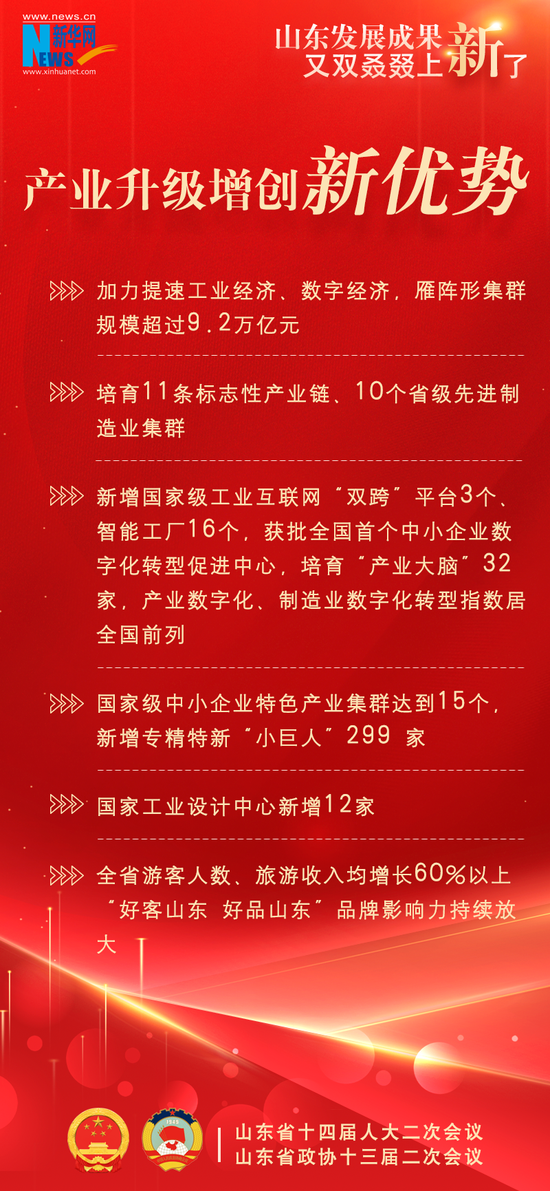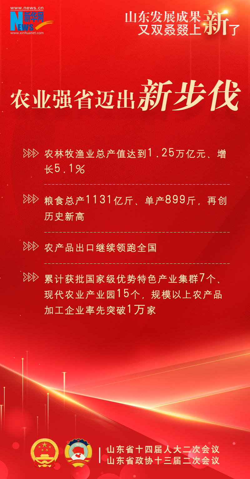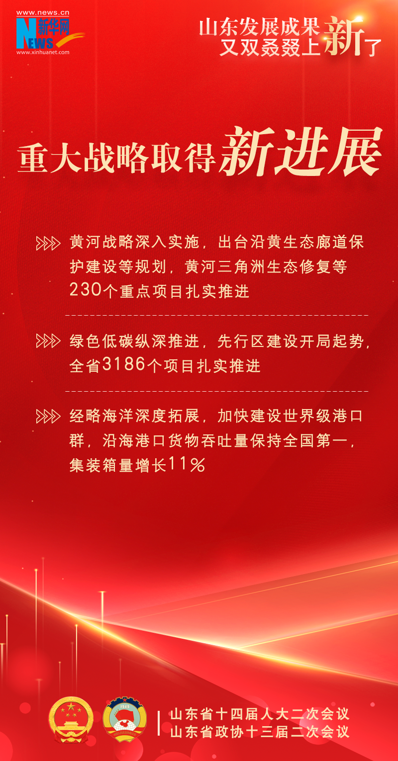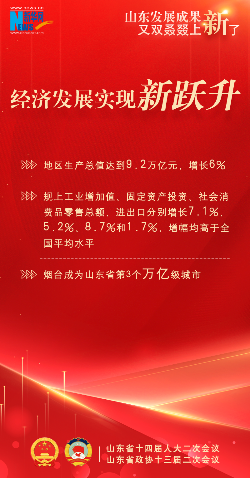 新华网济南1月22日电(陈琳琳、丁宇飞)今年山东省两会上,提交山东省十四届人大二次会议审议的政府工作报告显示,2023年,山东省经济持续回升、巩固向好,高质量发展扎实推进,又双叒叕上新了一大波发展成果!
