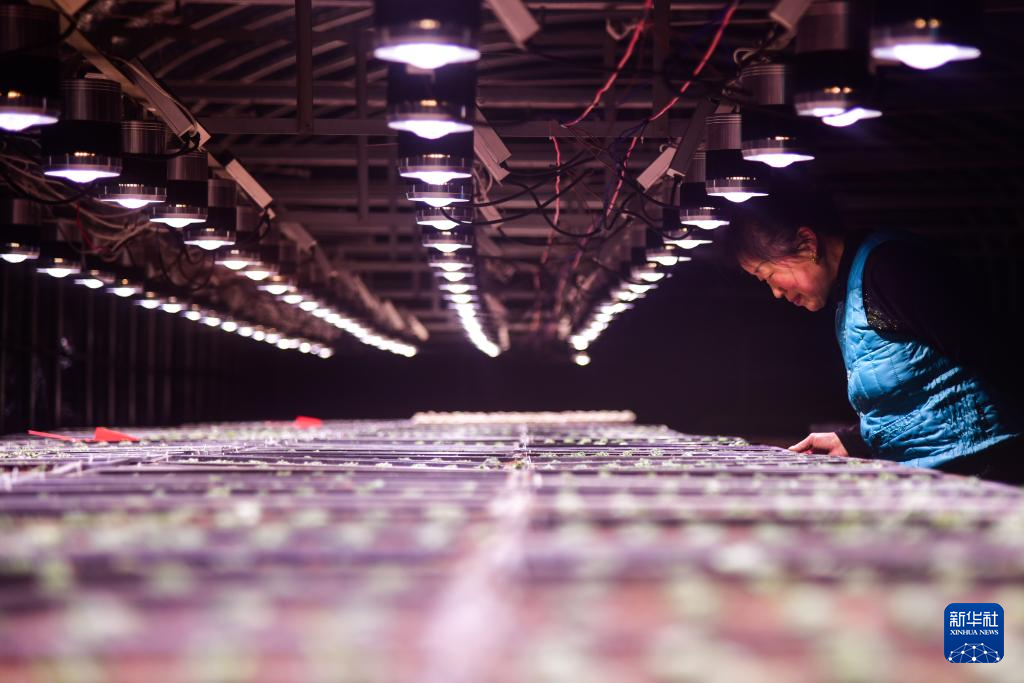 1月22日,村民在人工光源大棚内繁育多肉植物幼苗。