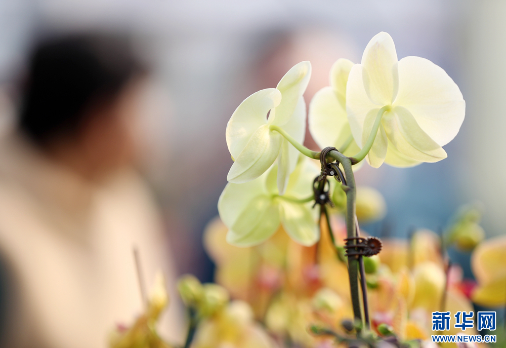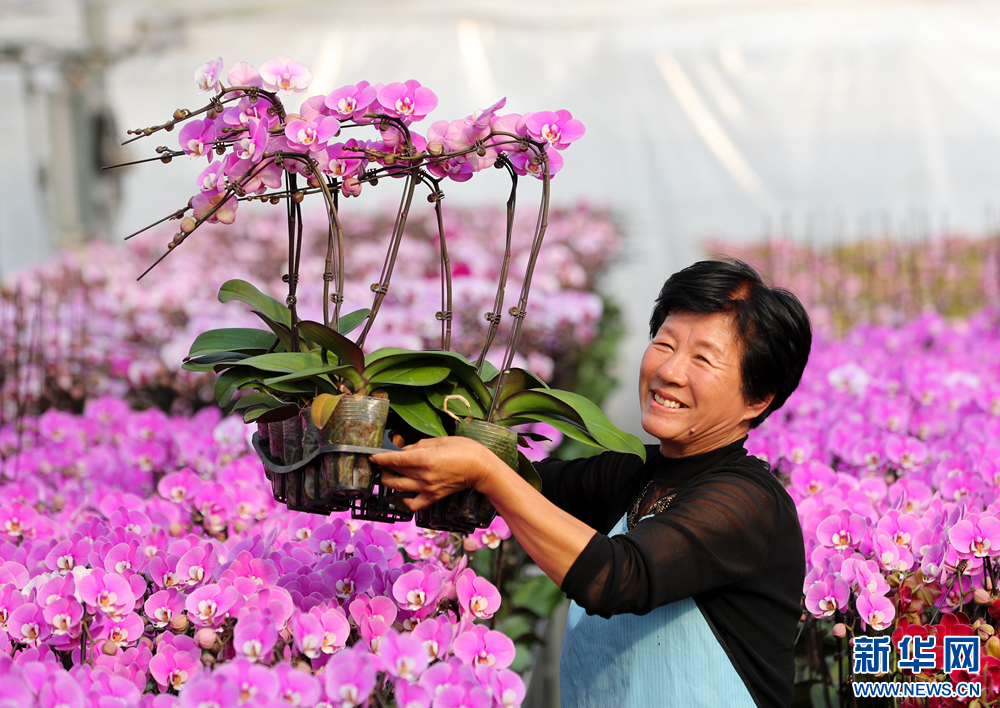 在位于山东省青岛市即墨区灵山街道的青岛百亿绿洲花卉种植基地,市民在选购蝴蝶兰。新华网发(张进刚 摄)
