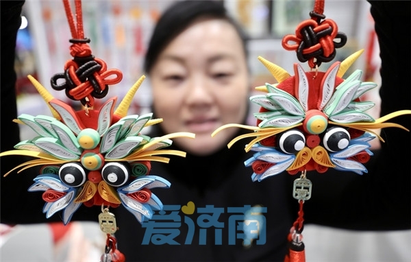 头顶犄角、憨态可掬,矫然昂首,“腾”于方寸之间……济南手艺人巧手造龙,指尖不断翻出新花样 。1月28日,记者拍摄手艺人制作的“龙”年工艺品,将新年喜庆的氛围铺洒开来,受到市民欢迎。随着龙年春节临近,济南的手工艺人已提前推出了龙年主题的工艺品、文创产品,纸片、纸板雕刻的龙年彩灯、丝网印刷制作的生肖龙玩偶、衍纸工艺的卡通龙、布偶缝制的龙年挂件……造型栩栩如生,惟妙惟肖,蓬勃的“生肖经济”红红火火,激活岁末消费市场。(记者 赵晓明 )