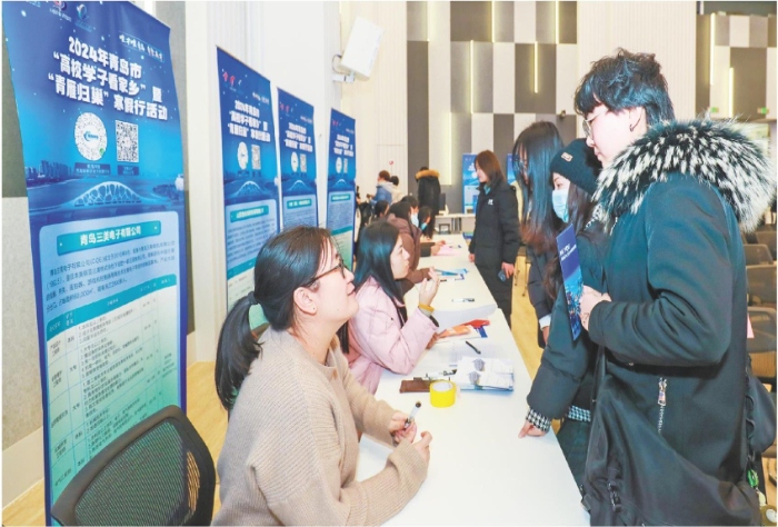 2月5日,2024年青岛市“高校学子看家乡”暨“青雁归巢”寒假行活动在青岛西海岸新区开幕,围绕青岛市24条重点产业链,优选岗位实现精准对接,举办就业见习专场招聘会(图)。现场提供优质岗位200余个,发布人才需求1500余个。