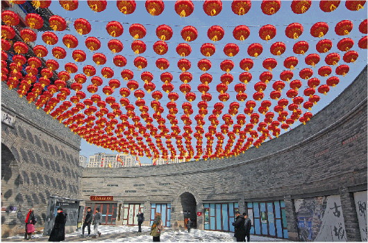 2月6日,农历腊月二十七,高高挂起的数千盏大红灯笼让青岛市即墨古城充满浓浓年味,引来大批市民拍照留影。古城的城楼、大街小巷和商铺门前,一个个喜庆的大红灯笼随风摇摆,大型金龙灯组熠熠生辉,将古城装扮得喜庆靓丽。齐鲁大地正红火迎新春,处处充满着节日气氛。