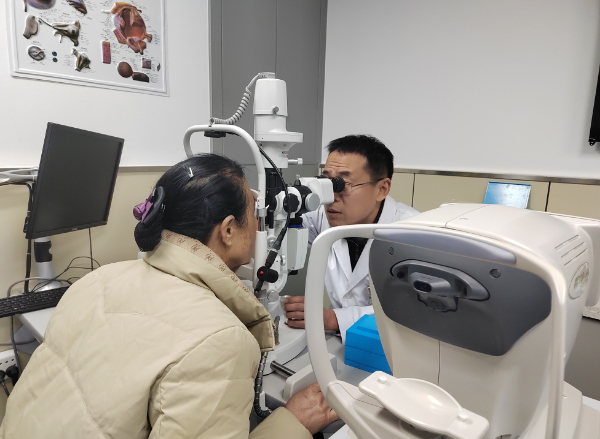 李彬用裂隙灯为患者检查眼睛