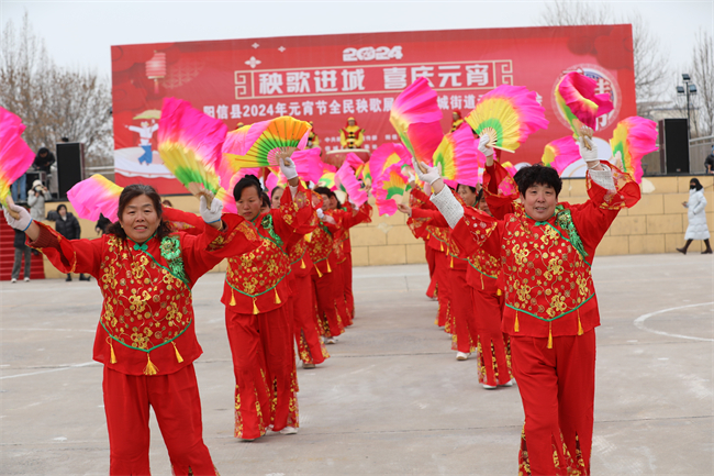 为积极响应“2024山东春节乡村文化旅游节”系列活动要求,进一步丰富全县人民群众在新春节庆期间的精神文化生活,营造浓厚热烈的元宵节庆氛围,充分展示阳信鼓子秧歌的艺术魅力,打造动态文化亮点,让梨乡阳城重温“秧歌闹元宵”的旧时记忆,阳信县委宣传部、阳信县文化和旅游局主办,阳信县文化馆和各乡镇(街道)文化站承办了这次活动。表演形式涵盖鼓子秧歌、疯秧歌、跑旱船、莲花落、扇子秧歌等,秧歌表演者将用铿锵的锣鼓、欢快的秧歌,将红红火火的喜气送给现场群众。(霍向锋 郑飞)