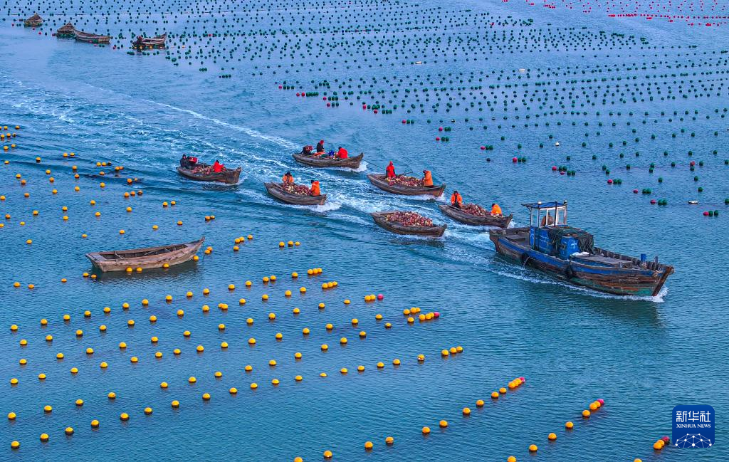 春节刚过,在山东省荣成市的各个海洋牧场里,养殖船来往穿梭,养殖工人紧张作业,一派“海上春耕”的繁忙景象。
