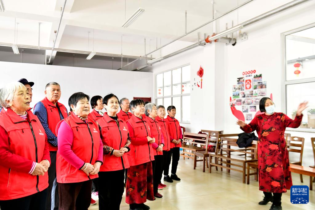 3月2日,在滨州市博兴县博华老年公寓文体活动室,老人们在排练合唱节目。新华社记者 郭绪雷 摄