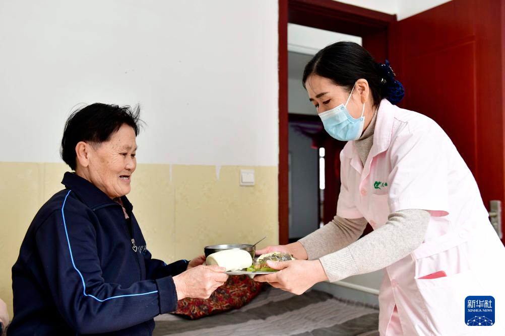 3月2日,在滨州市博兴县博华老年公寓,工作人员为老人送餐。新华社记者 郭绪雷 摄