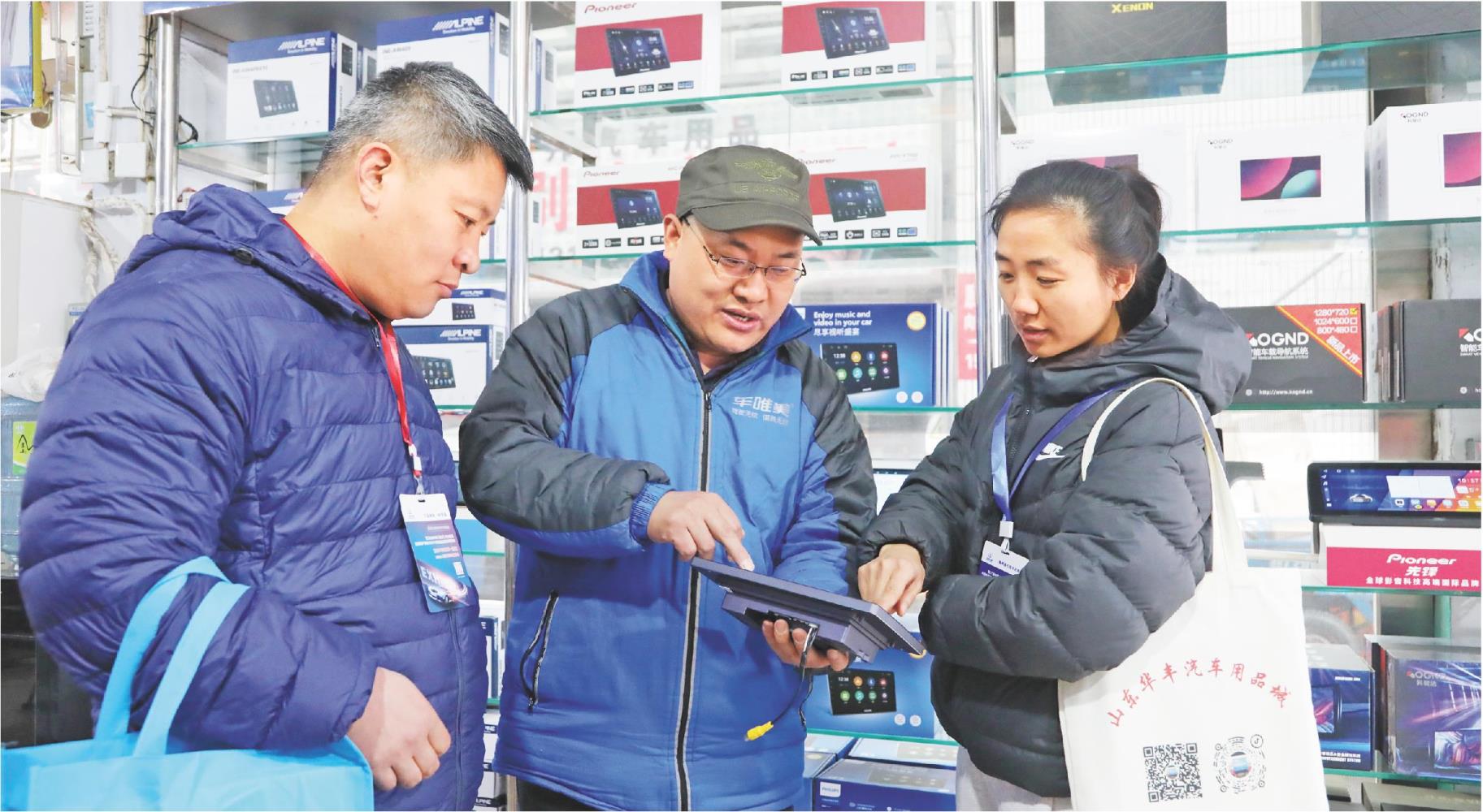 日前,第27届中国(临沂)汽车用品展销会举办。此次展会吸引车身改装、太阳膜、坐垫、香薰等300多家厂商参展。图为3月25日,采购商在企业展位前询问产品技术指标。