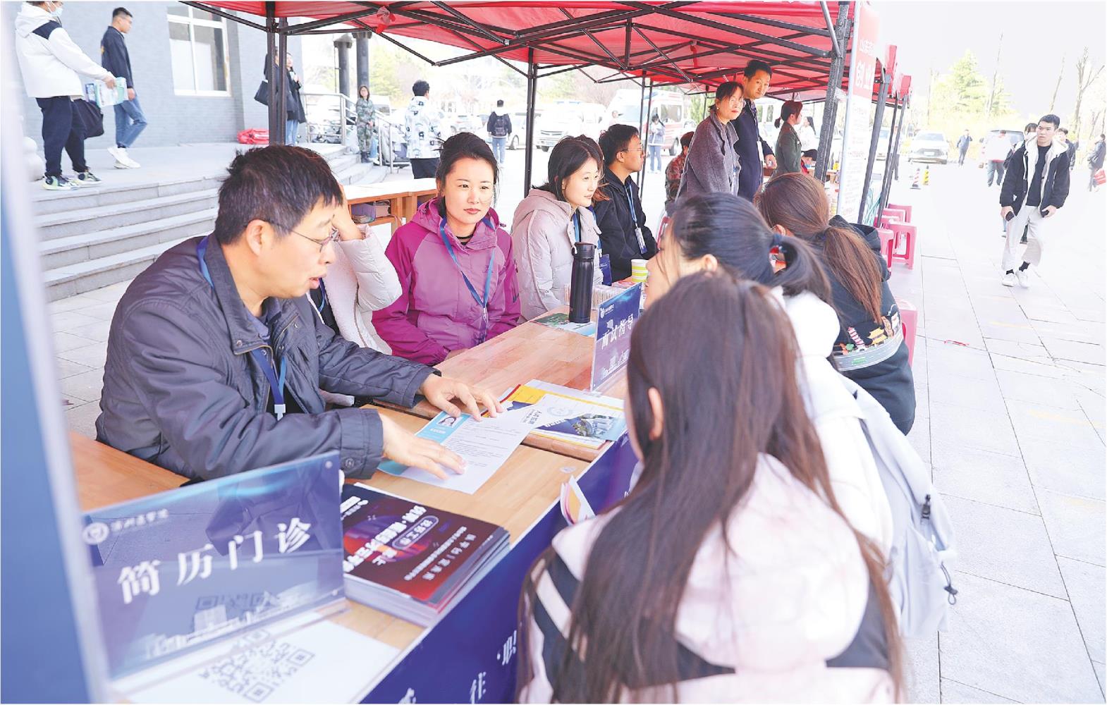 3月30日,滨州医学院举办“就选山东‘医’往‘职’前”2024年春季校园双选会暨“美好‘卫’来 ‘健’康烟台”医学人才筑梦烟台招聘会,现场设置了“简历门诊”“面试指导”等展位。