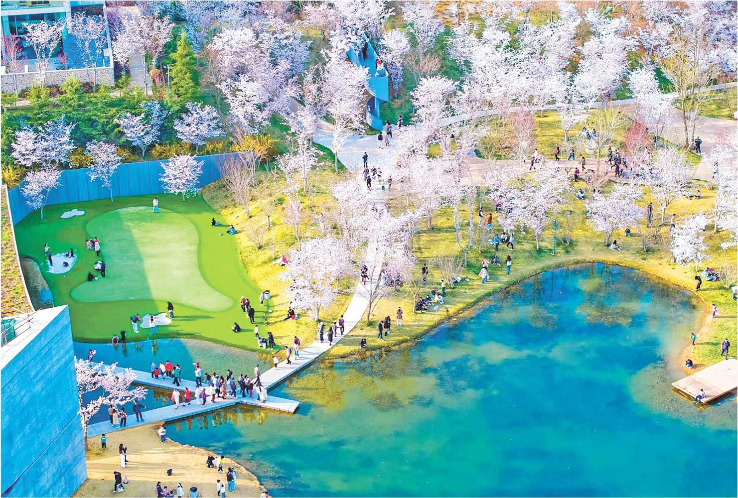 近日,位于山东省五莲县的白鹭湾美术馆小镇内樱花竞相绽放,品种繁多的樱花各展风姿,淡雅清香弥漫,吸引了大量市民游客慕名前来休闲娱乐,畅享春日美好时光。