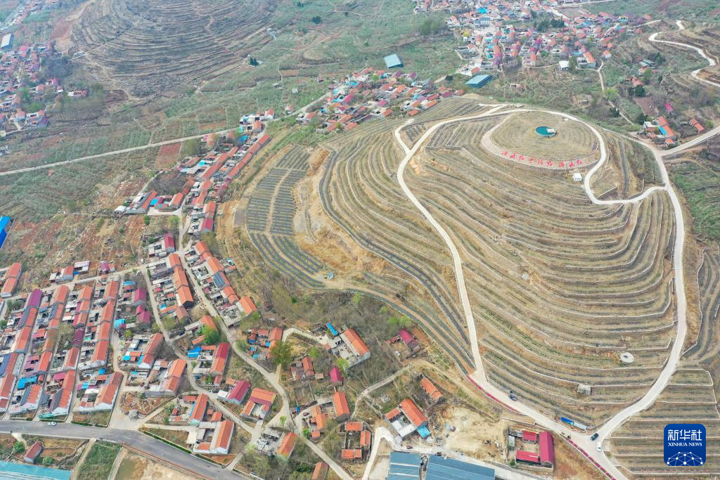 这是4月10日拍摄的沂源县西里镇红源新村山地现代栽培园(无人机照片)。新华社记者 朱峥 摄