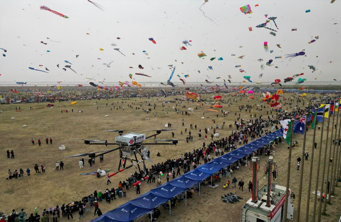 2023年在第40届“风筝会”滨海国际风筝放飞场,潍坊联通首次实现5G系留无人机作为应急通信保障,通信覆盖可达10公里、24小时不间断空中悬停,为风筝赛开幕式及放飞比赛提供空天一体、灵活机动的通信保障。同时,联通5G作为“双千兆”户外应用网络,也提供了卓越的用户体验,以超快速率、超大流量、超广覆盖,让用户随时随地畅享5G网络。