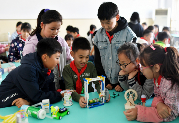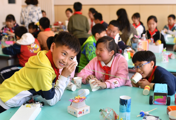 近日,山东省青岛市市北区普集路小学开展“秀我创意技能,争做科技达人”校园科技节主题活动,学生们在老师的指导下,完成下雨报警器、雷鸟滑翔机、幻灯机(凸透镜成像)等数十个科技小制作、小发明等项目,培养学生们的科技创新意识和动手动脑能力,激发探索科学的兴趣。