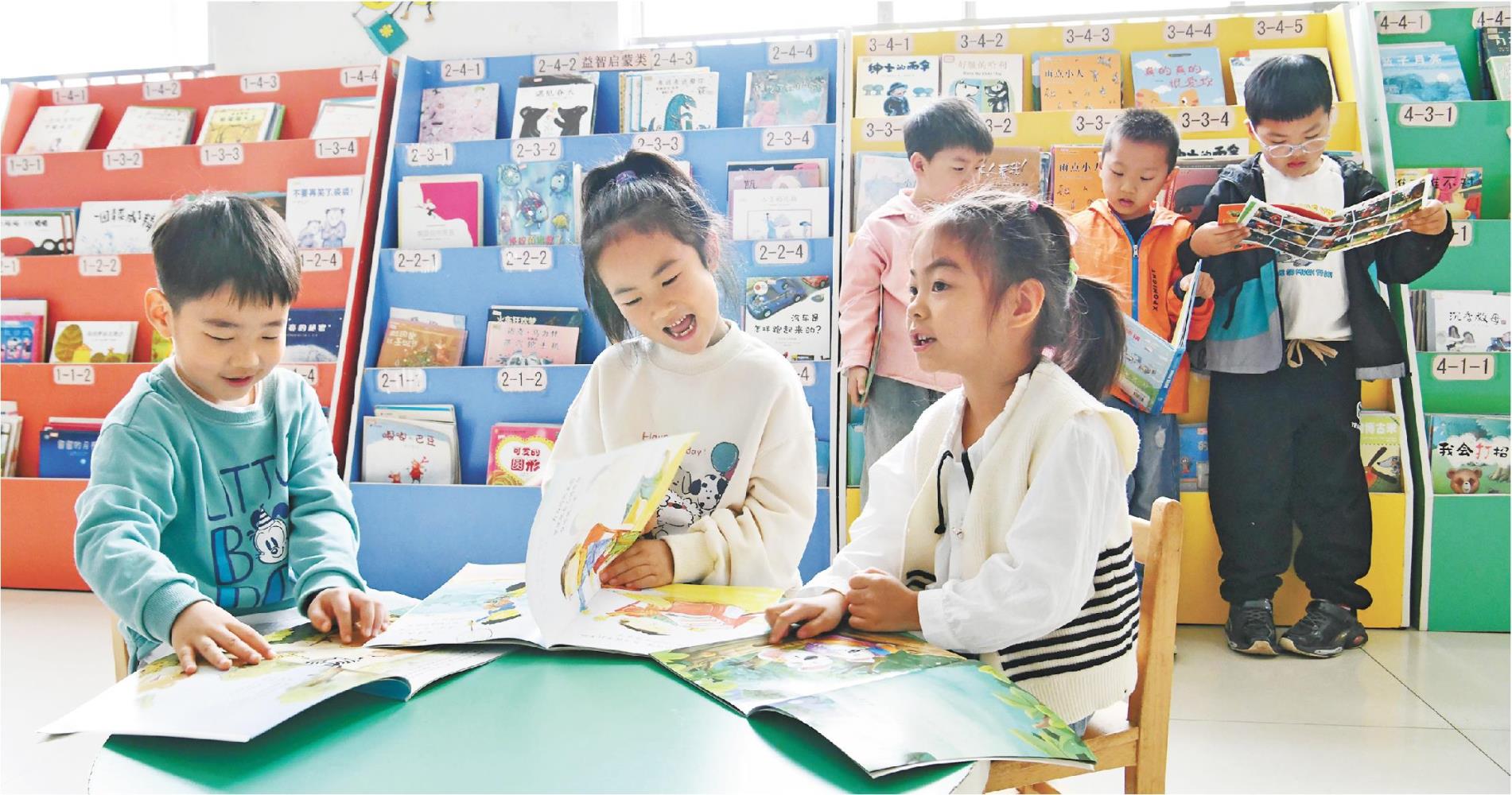 4月23日,在山东省枣庄市台儿庄区实验幼儿园绘本室,小朋友们正在阅读绘本。当日是第29个世界读书日,台儿庄区实验幼儿园开展了“书香致远 乐读悦享”读书活动,让孩子们从小养成爱读书的好习惯。