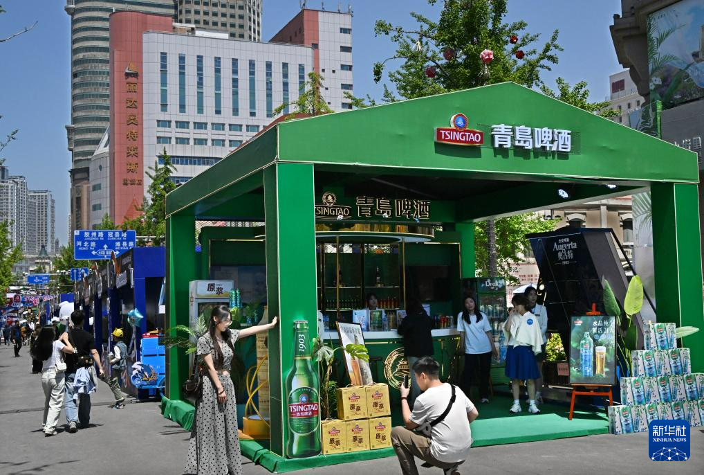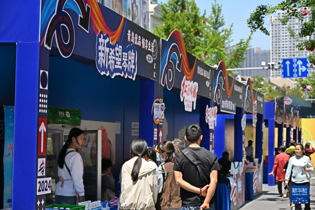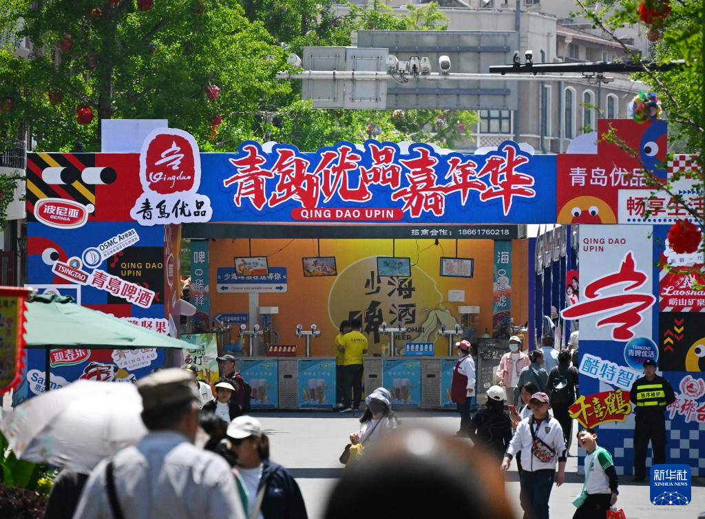“五一”期间,“青岛优品”嘉年华在山东省青岛市市南区百年老街中山路上举行。参与品牌通过开展新品发布、优品推介、国潮打卡等方式带动假期商旅消费。据介绍,青岛市2023年启动实施“青岛优品”工程,大力挖掘当地优质品牌资源,推动消费结构升级,重塑“品牌经济”的新动能、新引擎。新华社记者 李紫恒 摄