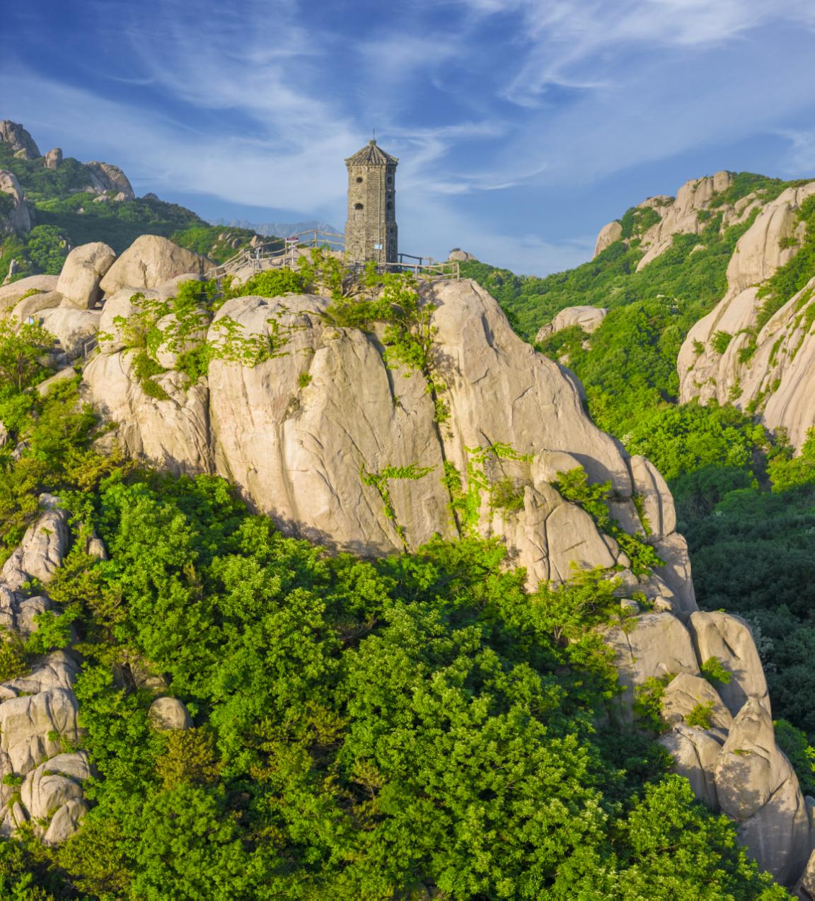 初夏季节,五莲山苍山叠翠的自然奇观吸引人们攀登游览。单英 摄