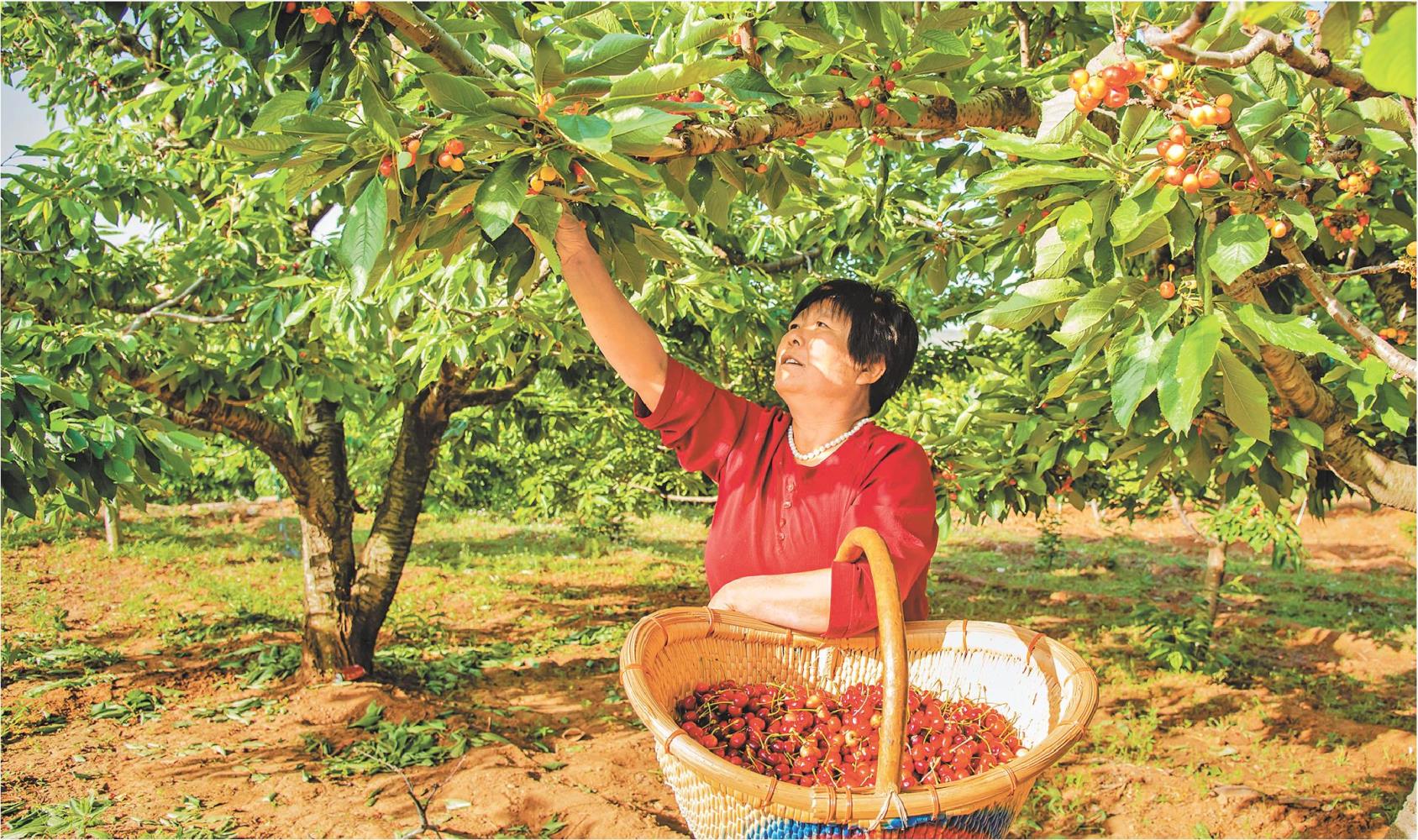 目前,全镇樱桃种植面积8万余亩,年产量3.1万吨,总产值5.6亿元。