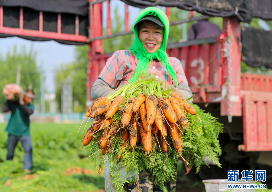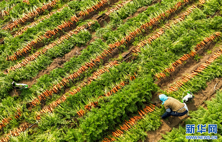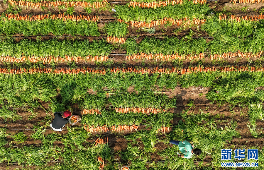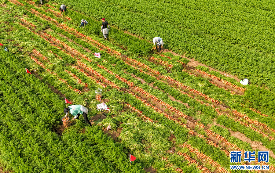 农民采收胡萝卜。新华网发(张进刚 摄)