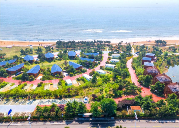 帆船似的船屋坐落在海边,穿过金色沙滩与大海相接。武爱民 摄