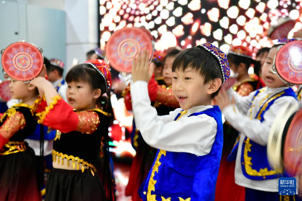 日照市东港区是山东省铸牢中华民族共同体意识示范区。近年来,东港区深入推进青少年“筑基”工程,成立东港区铸牢中华民族共同体意识教研室,深入挖掘民族团结教育素材,以学生喜闻乐见的形式,把中华文化认同、红色基因、共同价值等融入教学中,为铸牢中华民族共同体意识奠定坚实的精神和文化基础。新华社记者 郭绪雷 摄