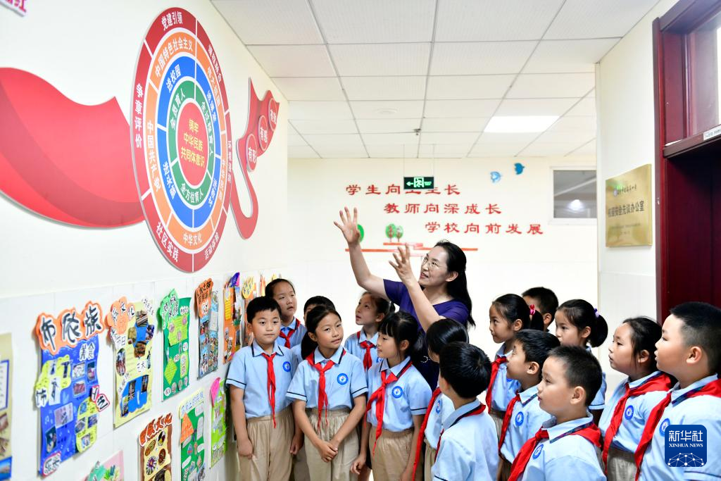 6月21日,日照市金海岸小学的同学们在老师的带领下参观学校铸牢中华民族共同体意识主题文化长廊。