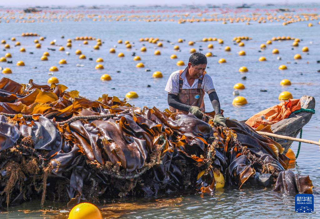 眼下,山东省荣成市15万亩海带采收作业接近尾声,收获进度达90%,预计年产量170万吨。