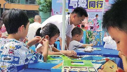 社区文化节现场,小朋友们认真地组装立体拼图,有的小朋友年龄太小,便与家长一起组装,每个人的脸上都露出开心的笑容。
