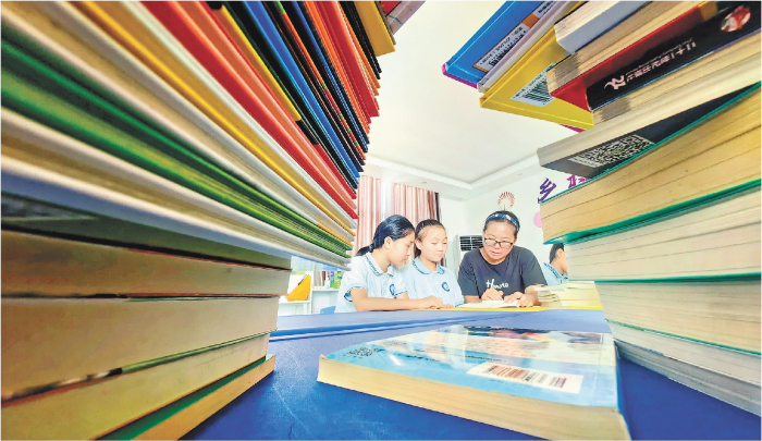 8月11日,学生在菏泽市牡丹区安兴镇船郭庄村新时代文明实践站读书。该镇组织志愿者在实践站轮流值守,较好地解决了留守儿童暑期无人照看、作业无人辅导等问题。