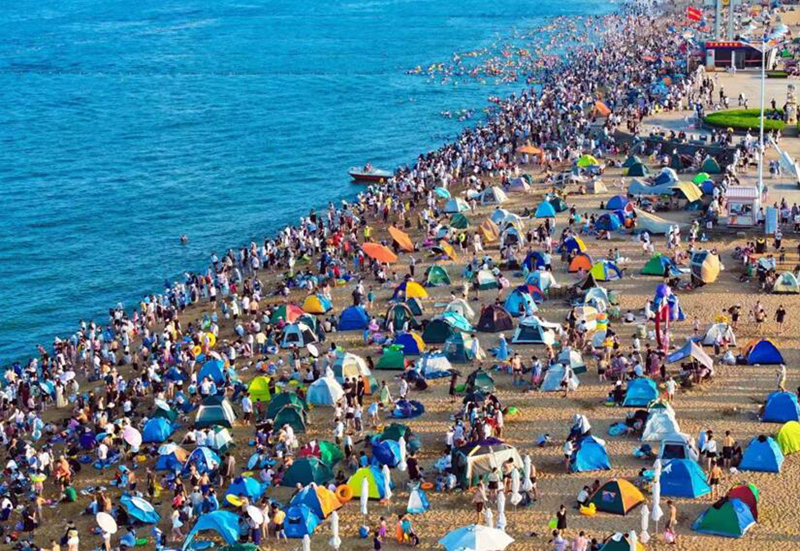 8月19日,万平口景区,一顶顶缤纷的帐篷填充了整座沙滩。宋年升 摄
