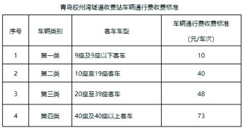 日前,青岛市发展改革委发文调整胶州湾隧道收费站车辆通行收费政策,下调了二至四类客车通行费标准,自2024年9月1日起执行。