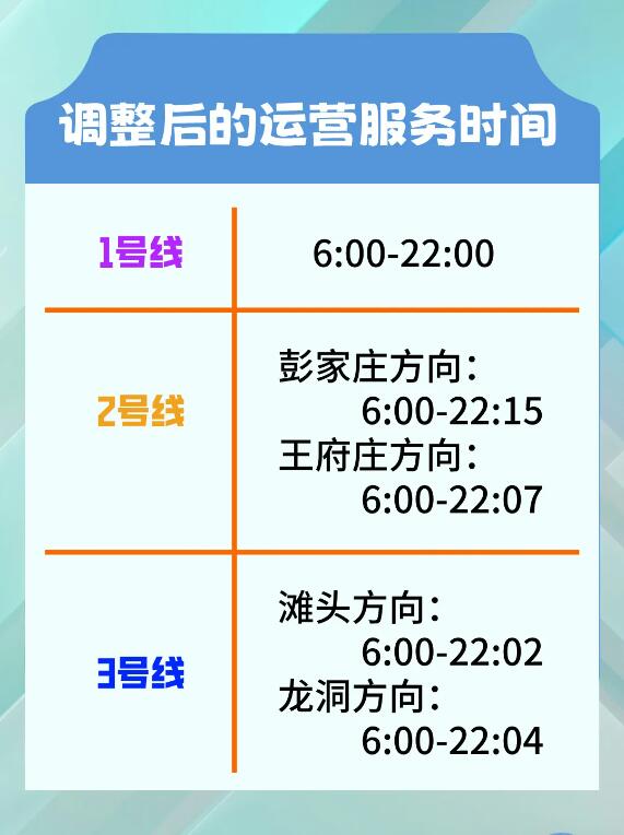 温馨提示:届时,线网各次列车到发时刻均有变化,各时段行车间隔均有调整,请提前规划好行程。市民乘客可通过“济南地铁”APP、微信公众号等查询首末班车时间以及行车间隔。