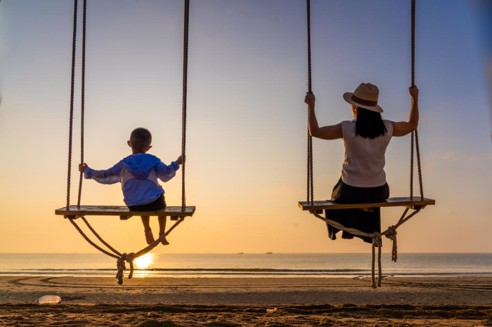 9月13日,日照金沙滩景区,游客荡着秋千惬意的等待一场日出。 武爱民 摄