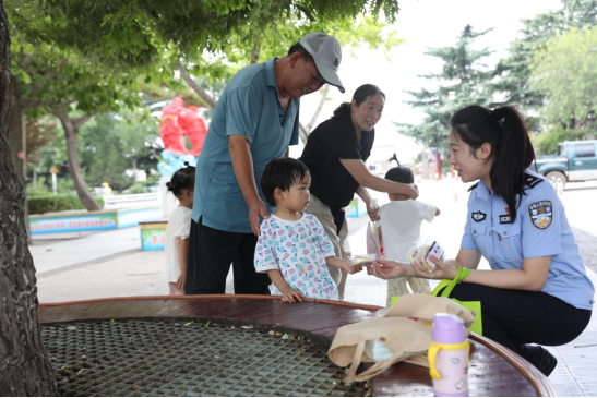 中秋来临之际,五莲反诈008团队进社区向居民赠送反诈月饼,宣传反诈常识。苏扬程 摄