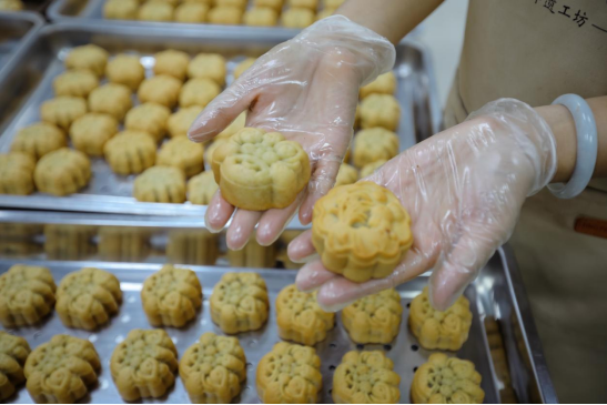 大彤小七花饽饽非遗工坊内制作创意月饼,传递浓浓的思念与祝福。 宋年升 摄