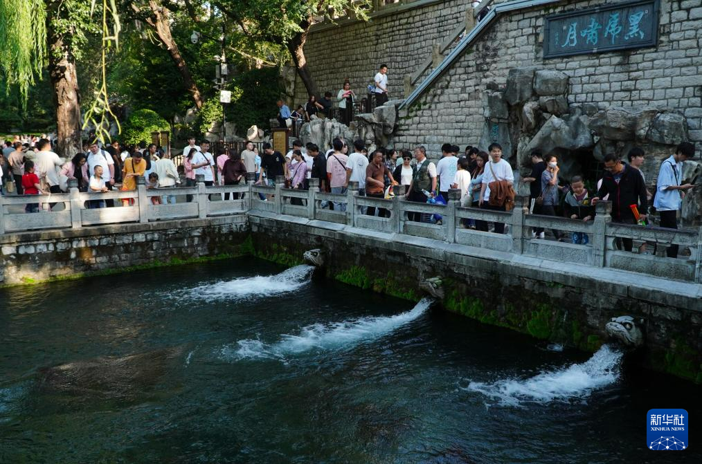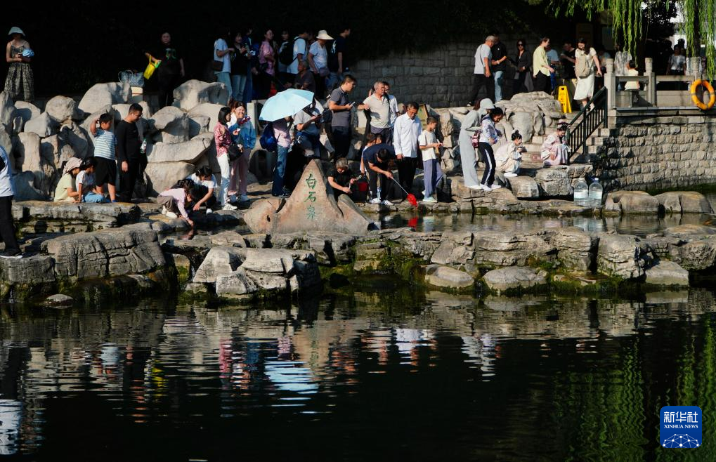 中秋小长假期间,泉城济南的各处名泉泉水喷涌有力,吸引游客前来观泉游览。新华社记者 徐速绘 摄pagebreak