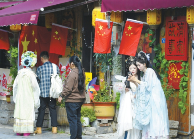 国庆假期,济南明府城片区多处上新,给游客带来惊喜。(本报记者 崔健 摄)