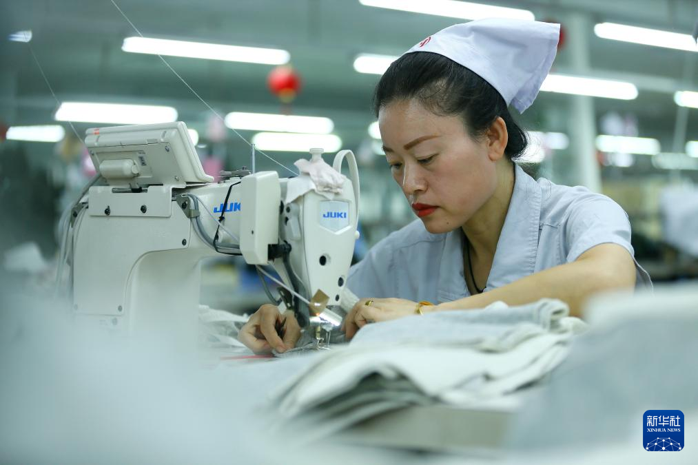 今年以来,山东省青岛市即墨区依托传统纺织服装产业优势,鼓励企业加大新技术、新工艺和新产品的研发投入力度,推动企业建设智能化生产线,促进纺织企业高质量发展。目前,当地纺织服装企业外贸订单充足,企业产销两旺。新华社发(梁孝鹏摄)